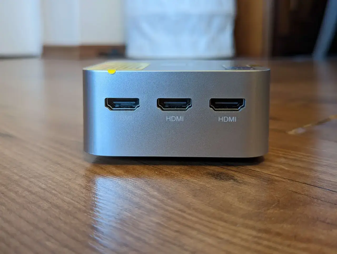 Auf der Vorderseite befinden sich der Power-Button, an den linken und rechten Seiten jeweils 3x USB 3.1 Anschlüsse und 3x HDMI 2.0 Anschlüsse. Auf der Rückseite finden wir dann noch den Stromanschluss, den 3,5 mm Klinkenanschluss sowie 2x Gigabit Ethernet RJ45 Anschlüsse.