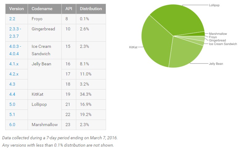Es ist Anfang des Monats und uns flattern wieder die neuesten Zahlen zur Android Verteilung ins Haus. Auch im März gibt es nichts Großartiges zu berichten, das neue Android Marshmallow dümpelt nämlich weiter vor sich hin.