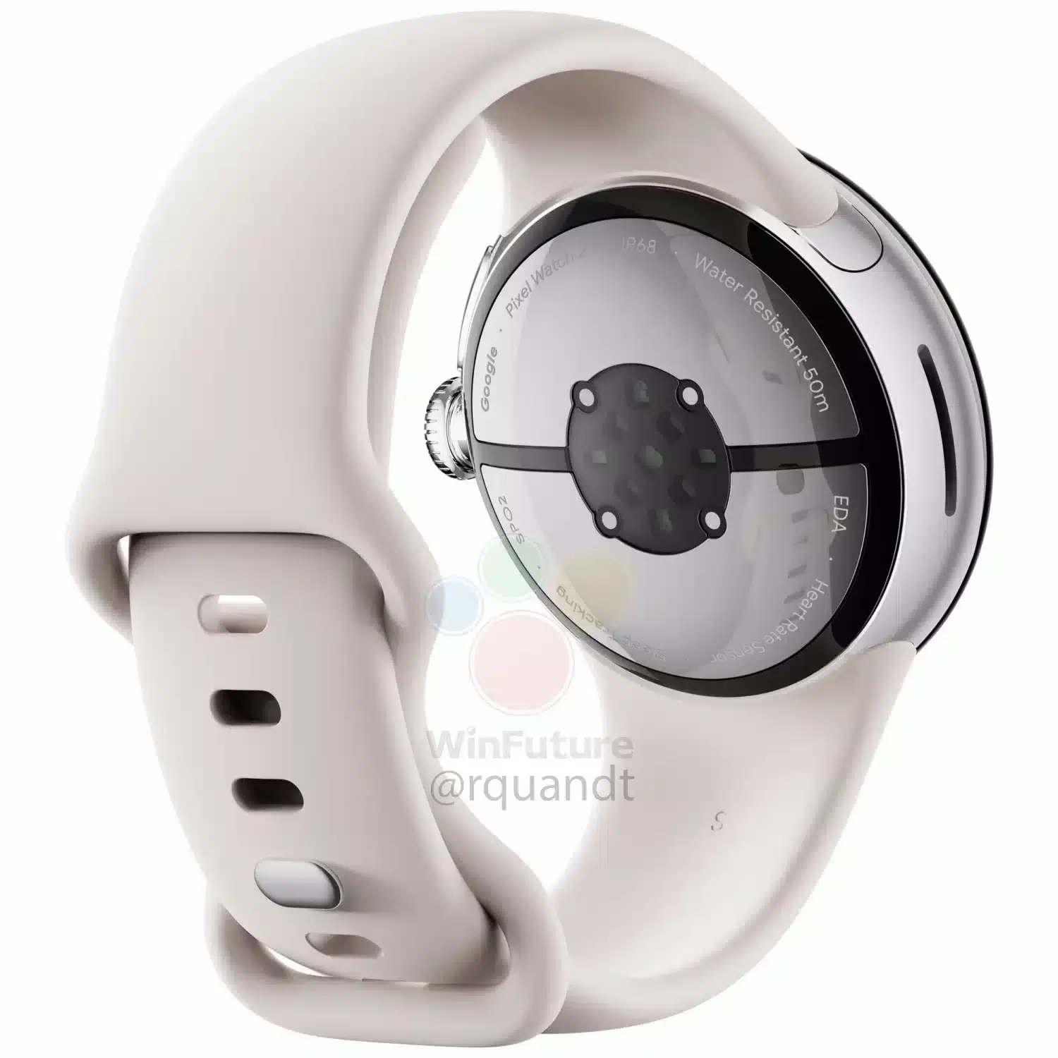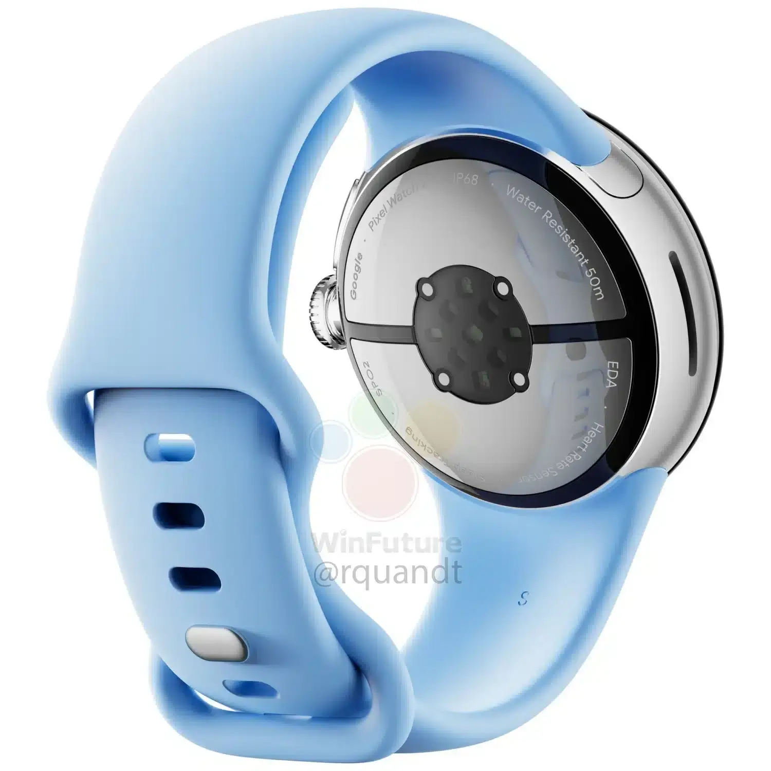 Das Design der Pixel Watch 2 entspricht im Wesentlichen dem der ersten Generation. Die Uhr hat ein rundes Display mit einem Durchmesser von 40 oder 44 Millimetern. Auf der Rückseite befindet sich ein Sensor zur Messung der Herzfrequenz.