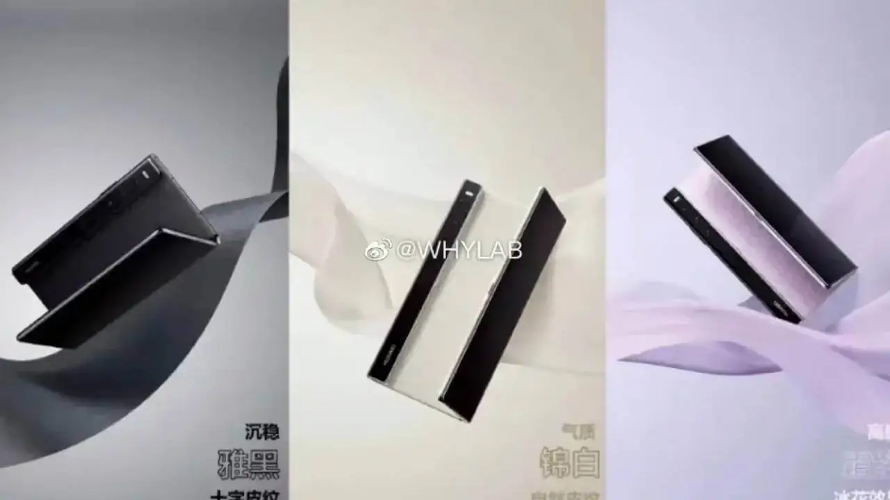 Zur gleichen Zeit veröffentlichte WHYLAB ein angebliches Bild des Huawei Mate Xs 2, das drei Farbvarianten, ein nach außen faltbares Design aufweist. Wie man sehen kann, wird vermutet, dass das Huawei Mate Xs 2 ein ähnliches Design wie sein Vorgänger hat.