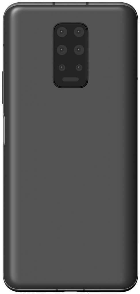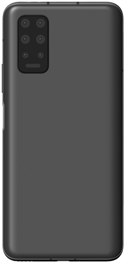 Eine Hexa-Kamera mit 6 Linsen ist dort zu sehen. Das Design der Kamera ähnelt aber der kommenden Huawei P40-Reihe. 2×3 Linsen untereinander und ein LED-Blitz sind dort zu sehen.