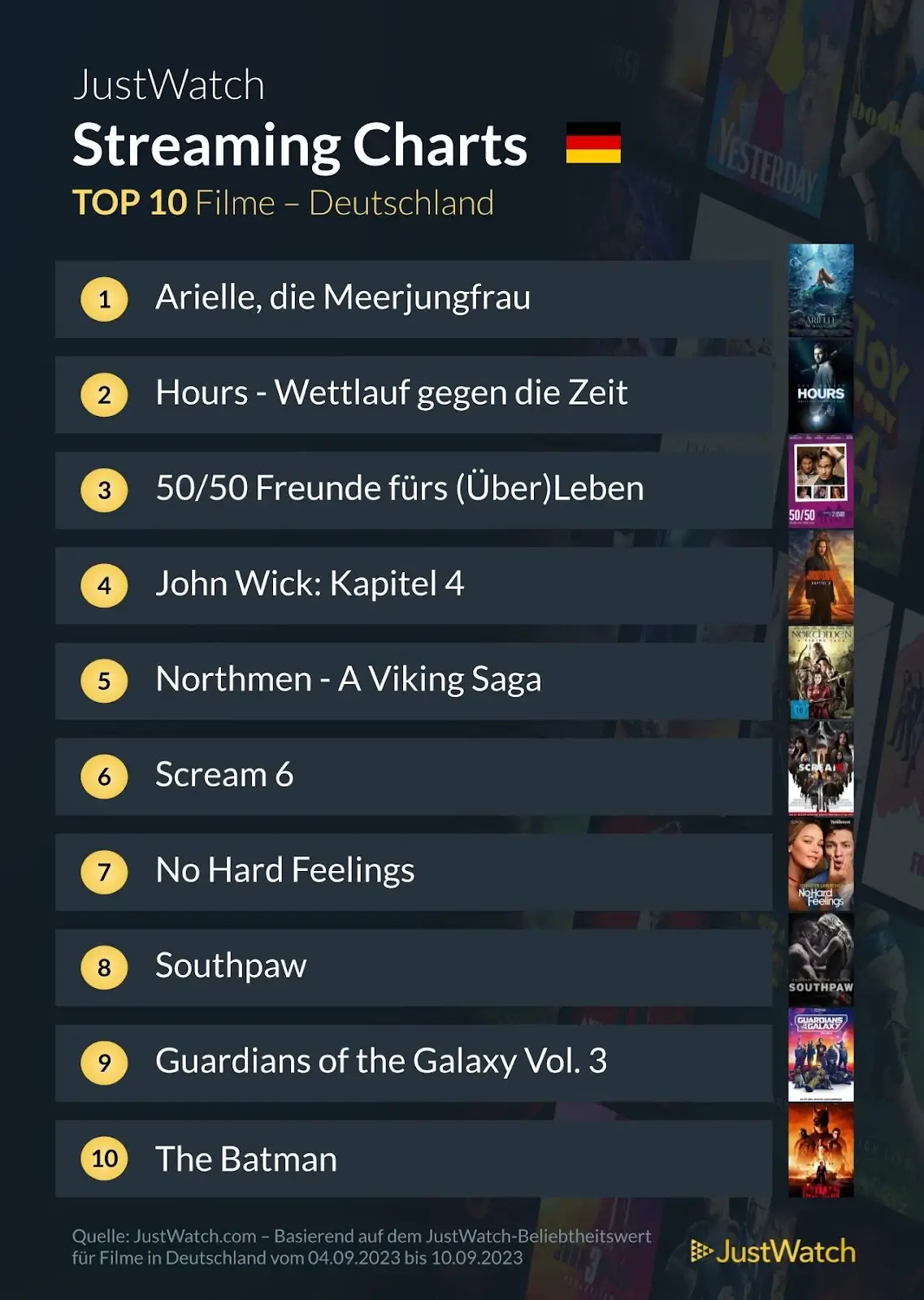 JustWatch: Top 10 Filme und Serien vom 04.09.-10.09.2023