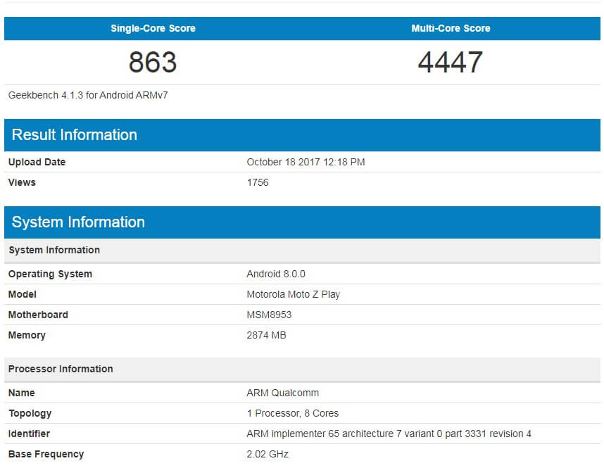 Für das Moto Z Play scheint das Android 8.0 Oreo Update auch nicht mehr lange auf sich warten zu lassen. Denn jetzt ist im Geekbench das Smartphone-Modell mit der neuesten Android Version aufgetaucht. Noch handelt es sich aber um eine closed Beta für das Update.