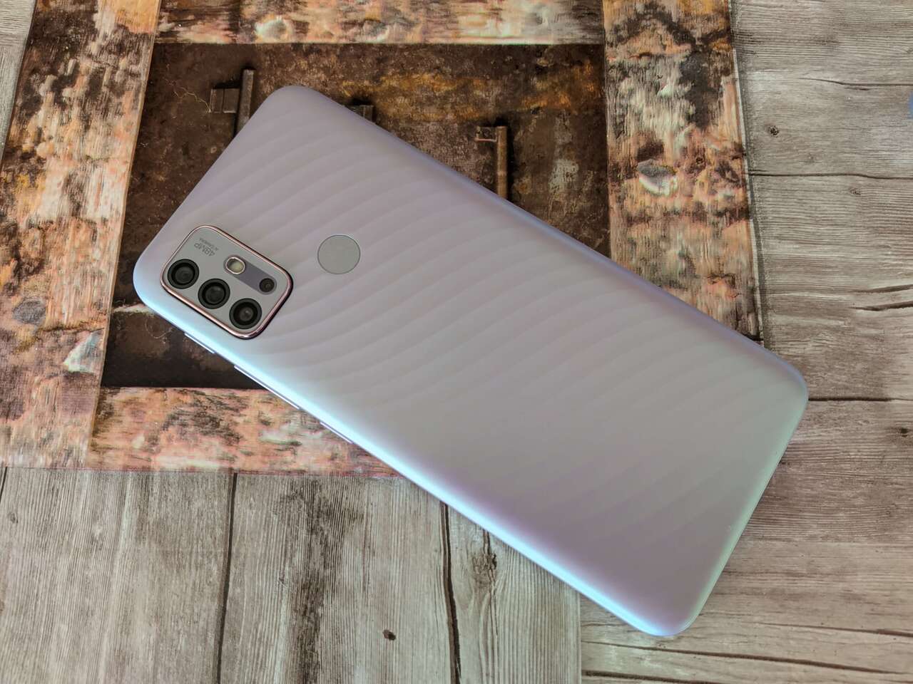 Die Rückseite ist in beiden Modellen aus Kunststoff. Dennoch hat man sich was einfallen lassen. Beim Motorola Moto G10 ist eine Art Wellenmuster auf der Rückseite eingearbeitet, welches sehrt gut zur Farbe Sakura Pearl passt. Man hat das Gefühl, als ob man eine Muschel mit einer Perle anfasst. Sieht wirklich gut aus.