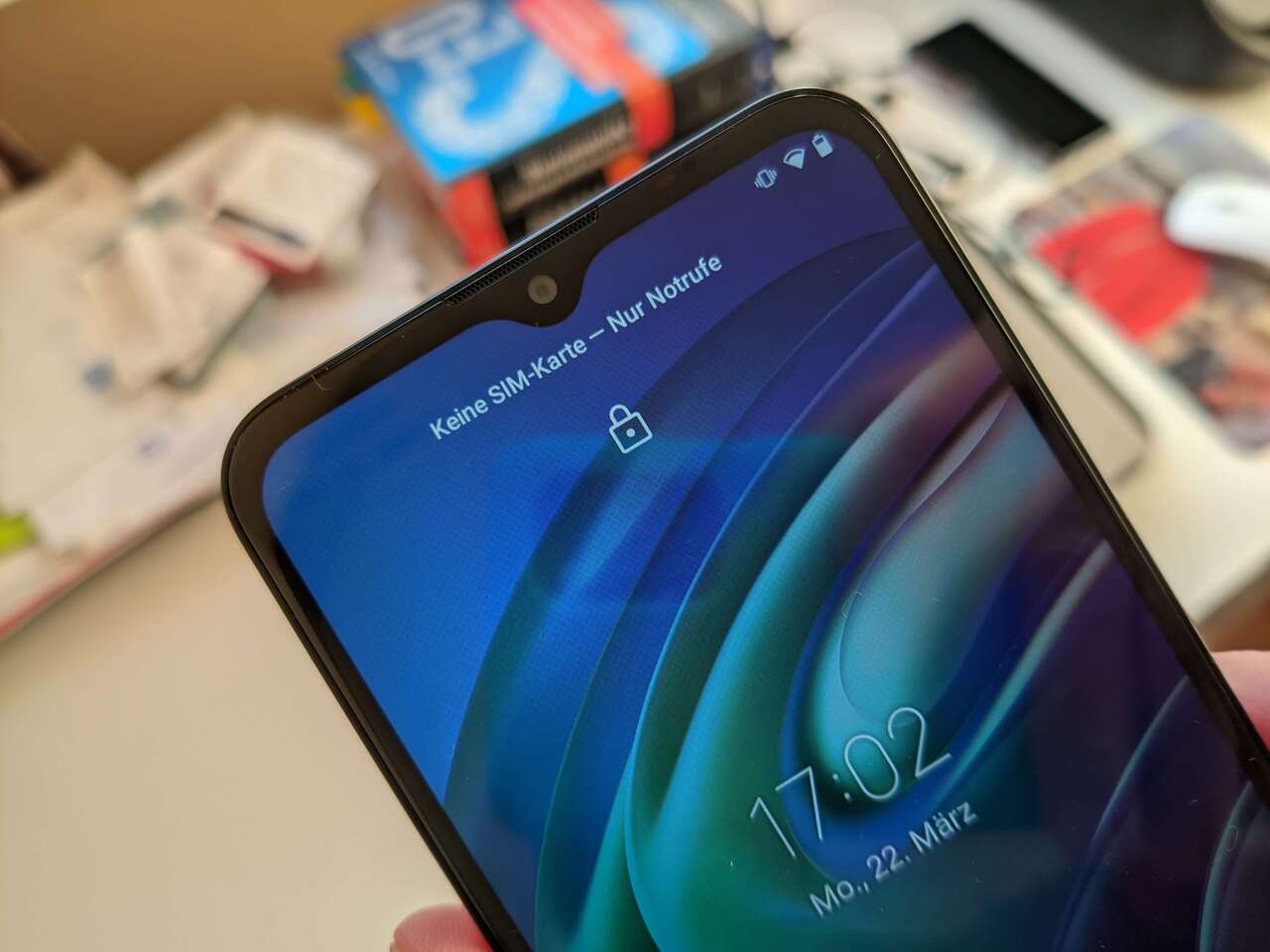 Auf der Vorderseite erwartet uns ein IPS-Display mit Waterdrop-Notch für die Selfie-Kamera. Auf der Rückseite finden wir dann das in der linken oberen Ecke platzierte Kameramodul, welches etwas aus dem Gehäuse herauszusteht. Aber so ist das heutzutage, derzeit ist das ein angesagtes Design und so nutzt auch Motorola dieses.
