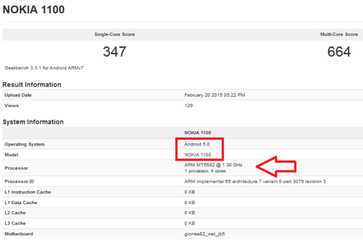 Das Nokia 1100 scheint ein neues Android Gerät der Finne zu sein. doch man weiß nicht genau, was es sein könnte. Ein Tablet? Oder doch ein Smartphone? Letzteres könnte dann aber nur ein Prototyp sein, denn bis Ende 2016 ist es Nokia untersagt, neue Smartphones zu verkaufen. Entwickeln kann man sie ja aber mal. Da aber bis dahin das Modell schon veraltet ist, könnte es sich um einen Prototypen handeln, um gewisse Dinge auszuprobieren. Ein Hinweis darauf könnte sein, dass Gionee in dem Benchmark auftaucht.