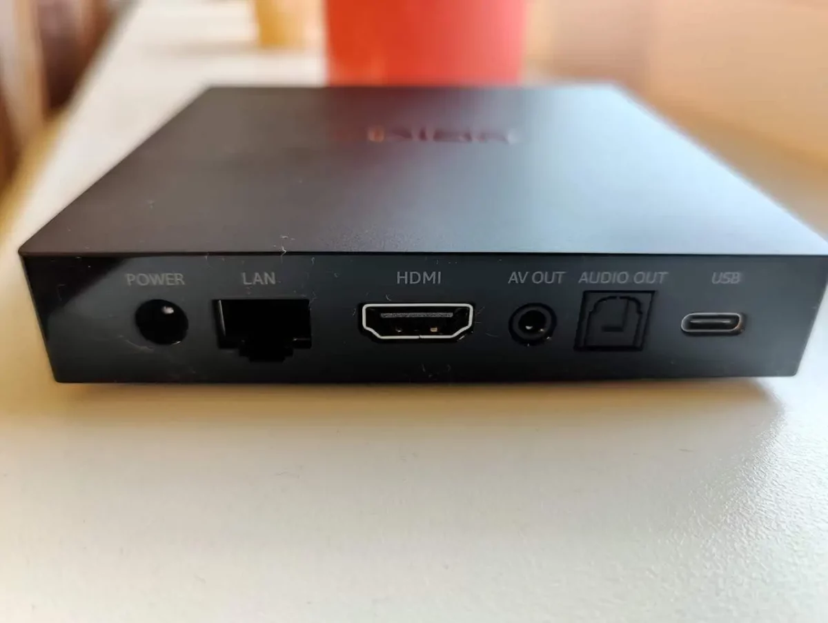 Zurück zur Rückseite der Nokia Streaming Box 8000. Denn dort gibt es massenhaft Anschlüsse. Mit dem HDMI-Anschluss wird die Box an den Fernseher angeschlossen. Ferner gibt es auch eine Buchse für ein LAN-Kabel, zwei verschiedene USB-Anschlüsse (USB-C und USB-A – an der Seite) und für die Tonausgabe habt ihr einen analogen AV-Ausgang sowie einen optischer Audio-Anschluss zur Verfügung. Ein Chromecast ist auch verbaut, damit habt ihr eigentlich alles zum streamen, was man braucht.