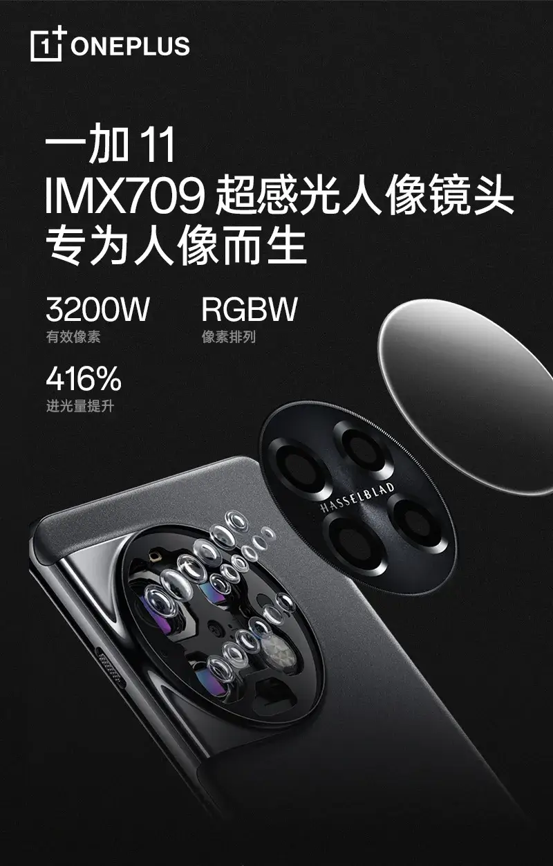 Zusätzlich zu all dem gibt OnePlus auch einen direkten Blick auf die Objektivkonfigurationen. Das OnePlus 11 Kamera-System ist eine Kombination aus dem Sony IMX890-Sensor für die 50 MP Hauptkamera + ein 48 MP Ultraweitwinkel-Makro-Objektiv mit dem Sony IMX581-Sensor + ein 32 MP, 2x Porträt-Objektiv mit dem IMX709-Sensor, der die RGBW-Anordnung verwendet, um deutlich mehr Licht einzufangen.