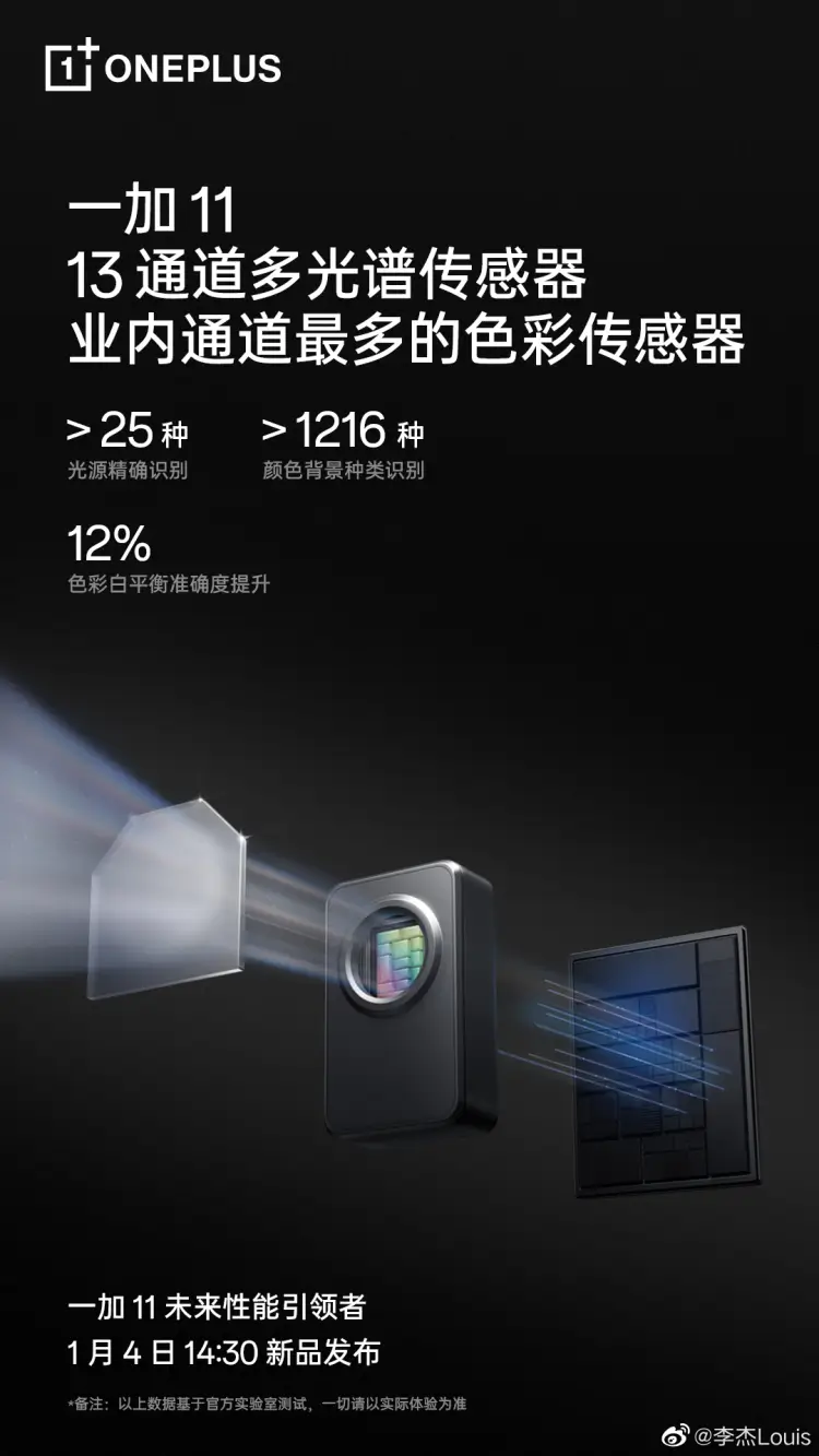 Zusätzlich verfügt das OnePlus 11 über einen 13-Kanal-Multispektralsensor, der Sensor mit den meisten Farberfassungskanälen in einem Mobiltelefon speziell für die Farbberechnung.