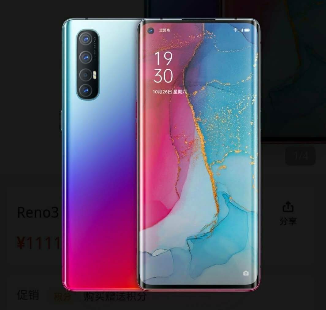 Im Teaser kann man sehr gut den Farbverlauf des Oppo Reno3 Pro 5G sehen sowie die Quad-Kamera. Auf der Vorderseite wird die Frontkamera in einem „Punch-Hole“ links oben verbaut sein.