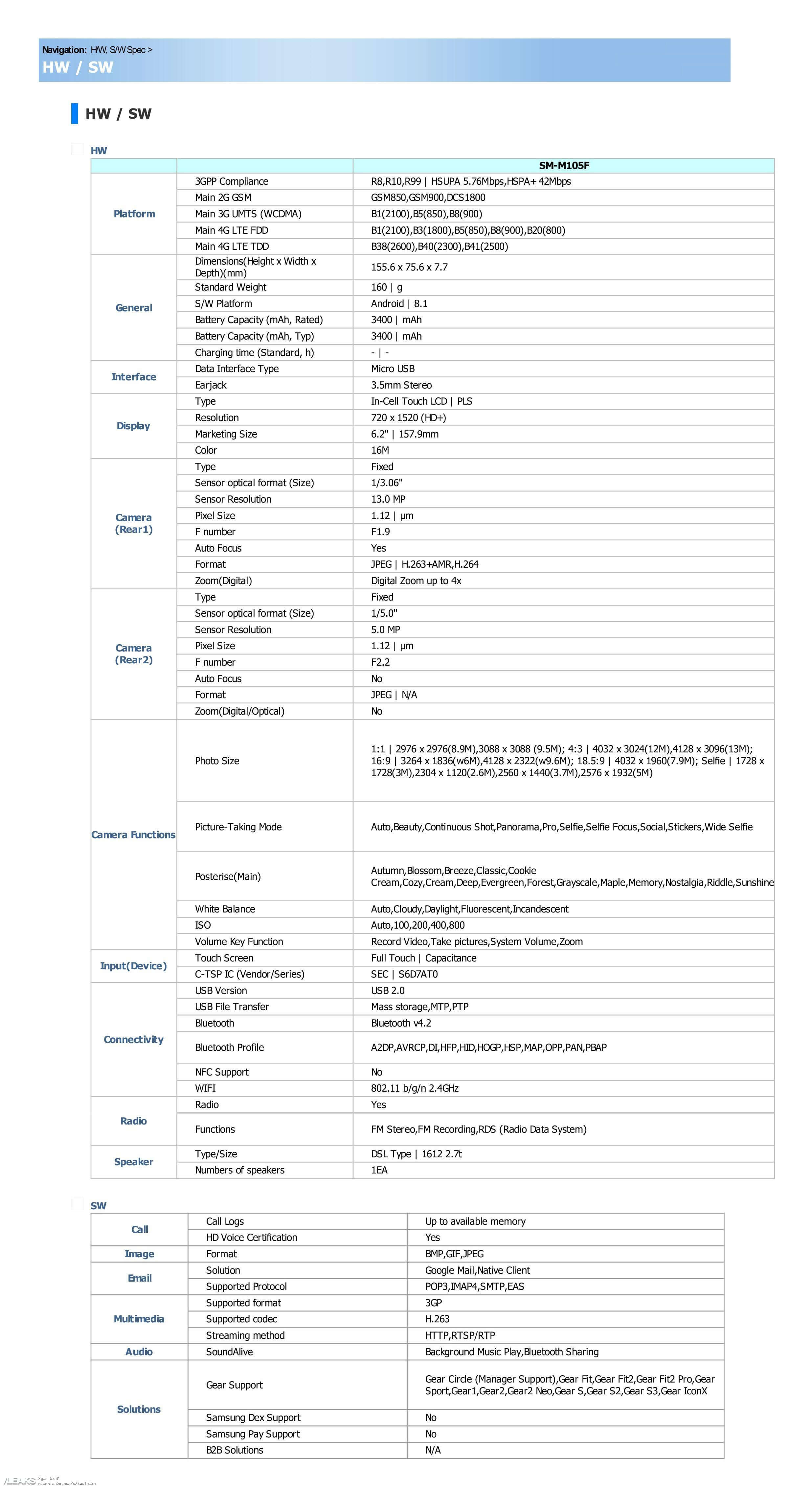 Doch zurück zu den kompletten Spezifikationen des Samsung Galaxy M10. Diese waren bereits bekannt, sind aber nun auch durch das aufgetauchte Handbuch auch bestätigt.