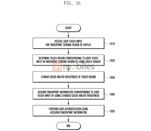 Das Patent für den Fingerabdrucksensor im Display des Samsung Galaxy Note 9 funktioniert folgendermaßen. Im unteren Drittel des Displays befindet sich die Fläche, über die Nutzer das Smartphone mit dem Finger entsperren können. Der Sensor könne die Helligkeit des AMOLED-Displays in der entsprechenden Region anpassen, um den Fingerabdruck lesen zu können.