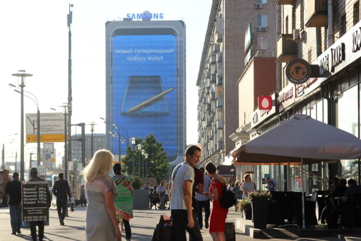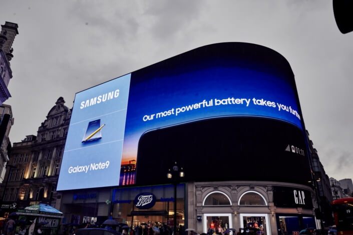 Auf den Times Square in New York, dem Piccadilly Circus in London oder aber an den Hochhäusern Moskaus, überall kann man nun das neue Samsung Galaxy Note 9 sehen. Also wer diese Werbung übersieht, der muss schon blind sein.