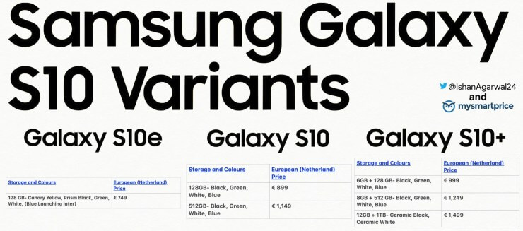Samsung Galaxy S10e, Samsung Galaxy S10 und Samsung Galaxy S10+ werden die drei Modelle heißen und in den Farben Gelb, Schwarz, Grün, Blau und Weiß/Silber im Handel erscheinen. Und auch die finalen Preise sind nun bekannt.