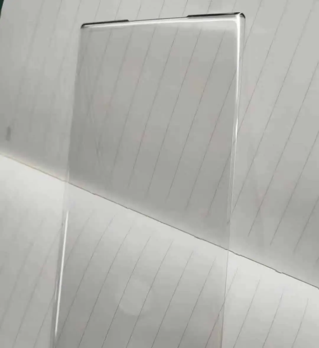 Das Design scheint also wirklich sehr eckig zu werden, wie das Glas verrät. Außerdem wird es extrem schmale Ränder um das Display geben und das Display wird natürlich ein wenig gebogen sein. Was man auf diesen Bildern nicht sieht, ist das mittig zentrierte Punch Hole für die Frontkamera. Es wird keine Lösung unter dem Display geben, auch wenn man es nach einem Blick auf die Bilder vermuten könnte.