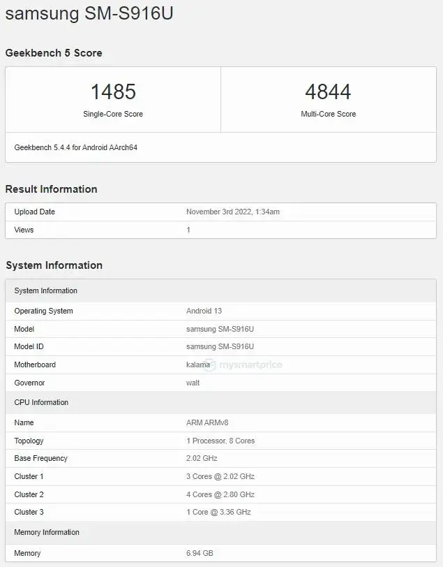 Samsung Galaxy S23+: US-Modell SM-S916U zeigt sich im GeekBench