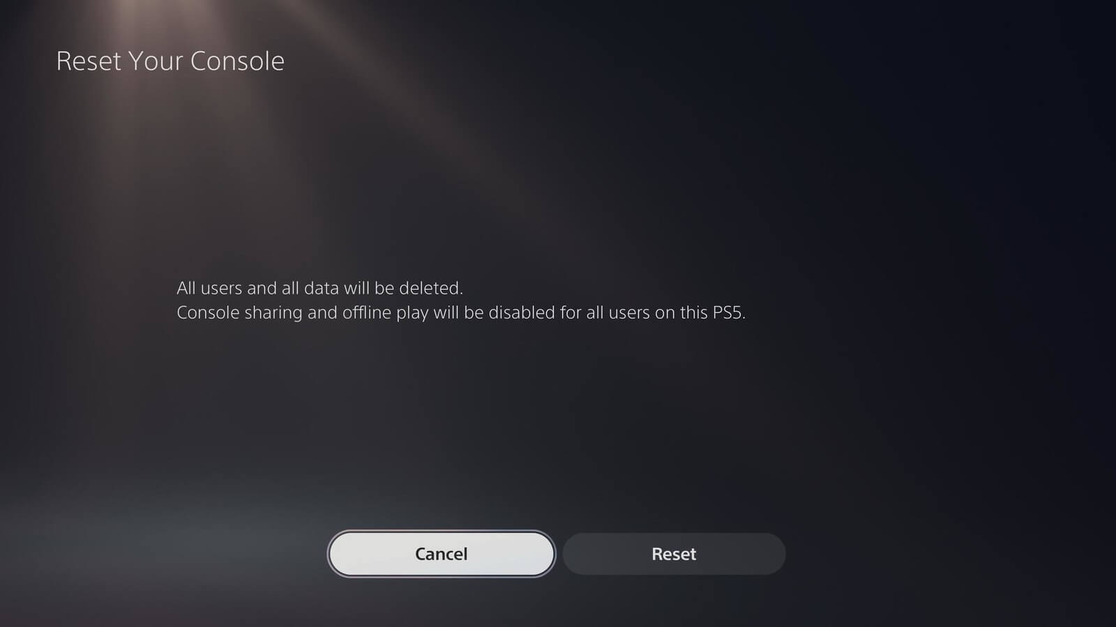 Wie im obigen Screenshot zu sehen ist, werden durch das Zurücksetzen der PlayStation 5 auf die Werkseinstellungen „alle Benutzer und alle Daten“ gelöscht. Außerdem werden die Konsolenfreigabe und die Offline-Wiedergabe der PS5 für alle Benutzer, die mit dem PS5 verbunden sind, deaktiviert. Es kann eine Weile dauern, bis das Zurücksetzen auf Werkseinstellungen abgeschlossen ist.