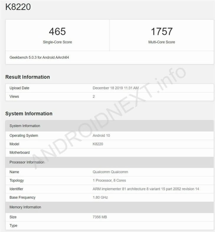 Das Modell, das den Codenamen „K8220“ trägt, soll ebenfalls 8 GB RAM und Android 10 an Bord haben.
