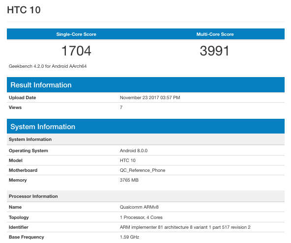 HTC 10 mit Android 8.0 Oreo im Geekbench aufgetaucht