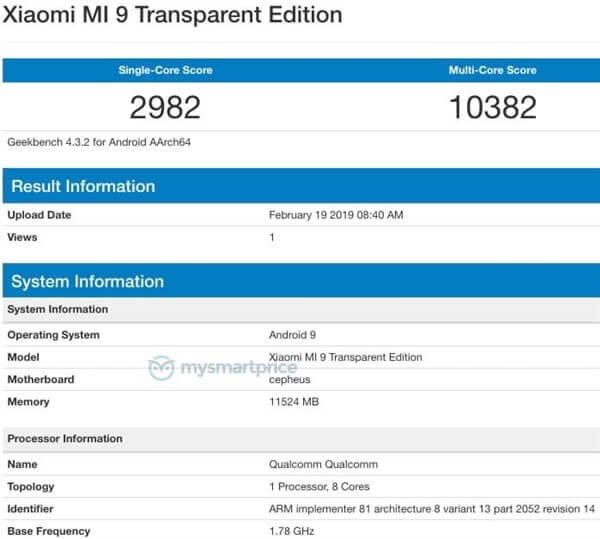 Xiaomi Mi 9: „Transparent Edition“ zeigt sich im Geekbench