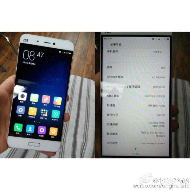 [sc name=“ICS-Ads mittig rechts Content-LargeRectangle“]Nur noch fünf Tage warten heißt es, dann ist endlich der Xiaomi Mi5 Release. Am nächsten Mittwoch dann werden wir endlich wissen, ob die ganzen Leaks der vergangenen Wochen auch wirklich immer das neue Flaggschiff gezeigt haben. So wie das jetzt aufgetauchte Foto auf Weibo. Dieses soll mal wieder das Xiaomi Mi5 zeigen. Und das Design passt ganz gut zu den vorherigen Leaks. Zwei Sachen kann man außerdem erkennen, MIUI Version 7.6.2.1 auf Android 6.0 Marshmallow-Basis ist installiert und es wird 3 GB RAM geben. Ansonsten erscheint das Xiaomi Mi5 mit einem 5,15″ FullHD-Display mit 1.920 x 1.080 Pixeln Auflösung. Im Inneren werkelt der 2,15 GHz Qualcomm Snapdragon 820 Quad-Core-Prozessor. Der interne Speicher ist 64 GB groß. Auf der Rückseite ist eine 16 MP Kamera mit OIS und Laser Auto-Fokus verbaut, auf der Vorderseite eine 4 MP Ultra-Pixel Kamera. Der Akku hat eine Kapazität von 2.910 mAh. Ferner gehören auch USB Typ-C, Dual-SIM und NFC mit zum Lieferumfang. Das Xiaomi Mi5 soll zwischen 1.999 und 2.499 Yuan kosten, umgerechnet ca. EUR 274,00 – 343,00.